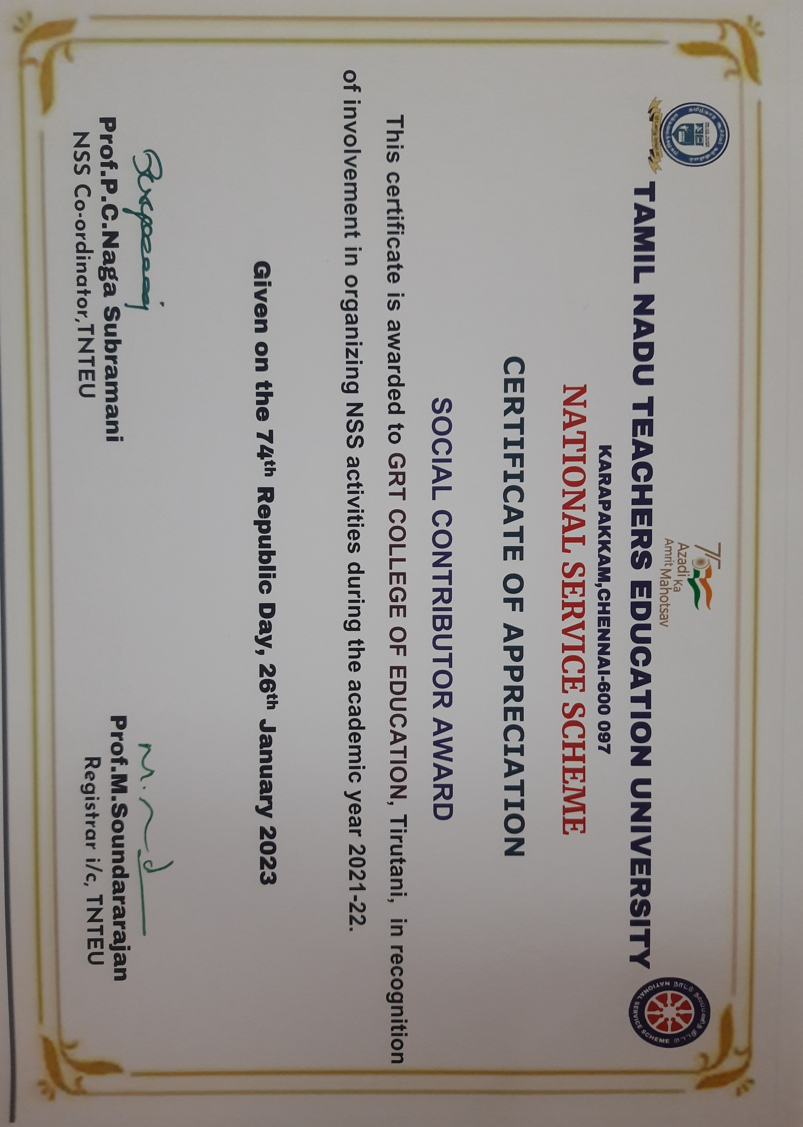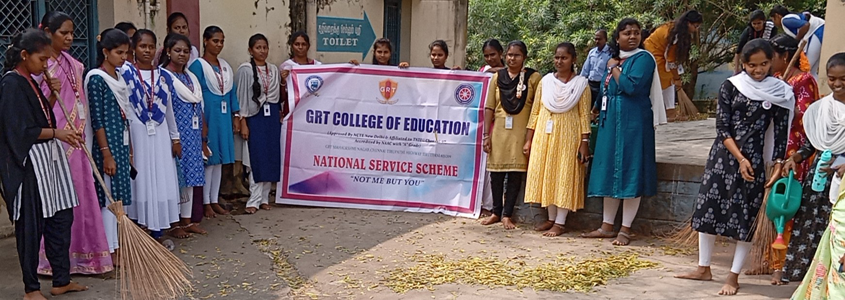 The Motto of NSS is “Not Me but You”, reflects the essence of democratic living and upholds the need for selfless service.